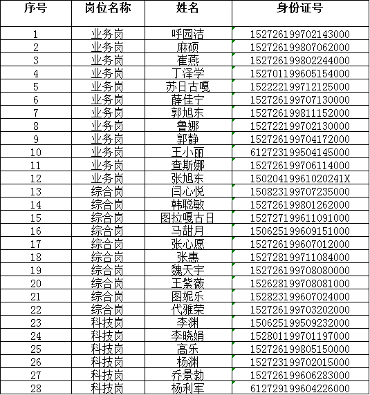 附件:杭錦旗農(nóng)村信用合作聯(lián)社2019-2020年校園招聘資格審核合格,面試入圍人員名單