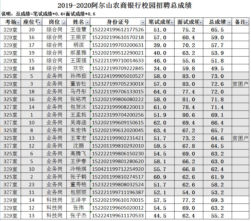 附件:阿爾山農(nóng)商銀行2019-2020年校園招聘總成績。